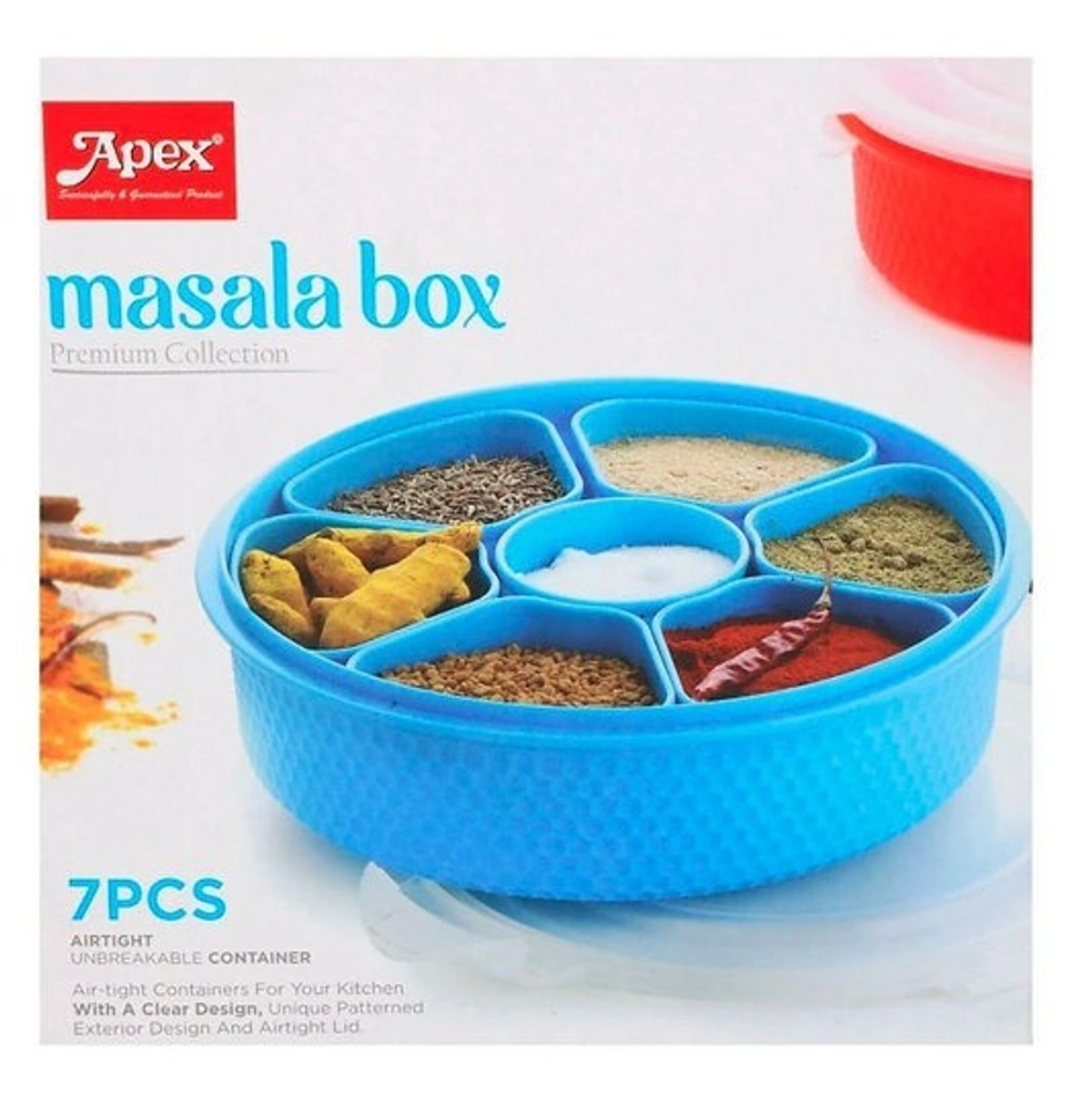 APEX KITCHENWARE ARTICLES Plastic Masala Rangoli Box - 7 Sections - 700 ml, 1 Piece,