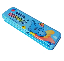 Cartoon Hardtop 2 Compartment Small Metal Pencil Box - Elephant Design-590