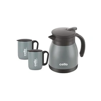 Cello Duro Coffee Style Gift Set of 3 Pcs | Vacusteel Carafe | Hot and Cold Carafe | Double Walled Vaccum Insulation Tea/Coffee Pot | (1 Flask & 2 Mugs), Grey