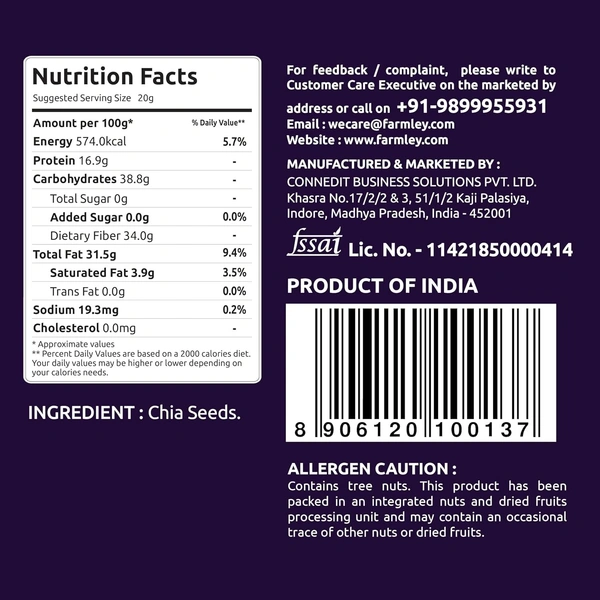 Farmley Chia Seeds 200g I Seeds for Eating | Seeds for Weight Management | Rich in Calcium, Protein & Fibre (Pack of 1)