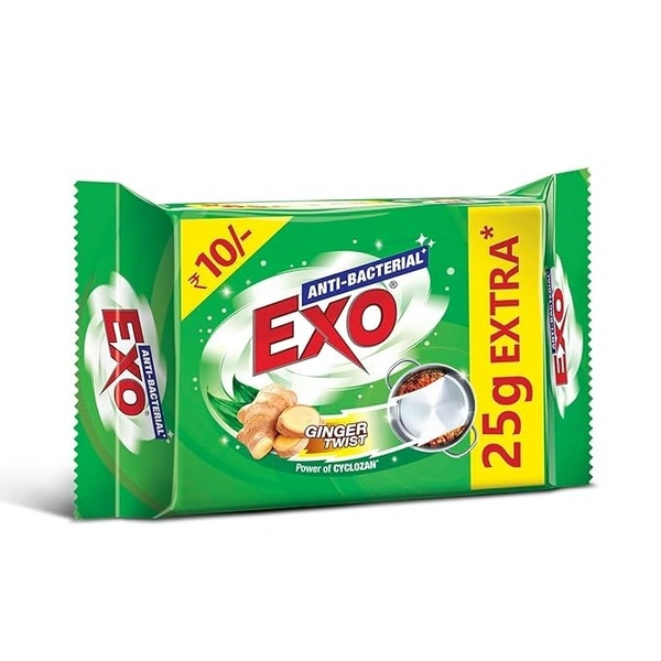 Exo Dishwash Bar 160g (135g + 25g free) | Complete dishwashing solution with anti-bacterial efficacy with goodness of ginger | Remove tough grime, kills bacteria & sanitizes the utensils