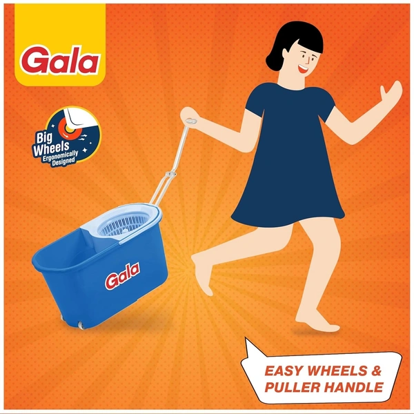 Gala Plastic Quick Spin Mop,Easy Wheels & Big Bucket With 2 Microfiber Refills, Floor Cleaning Mop With Bucket, Pocha For Floor Cleaning, Mopping Set(White And Blue)