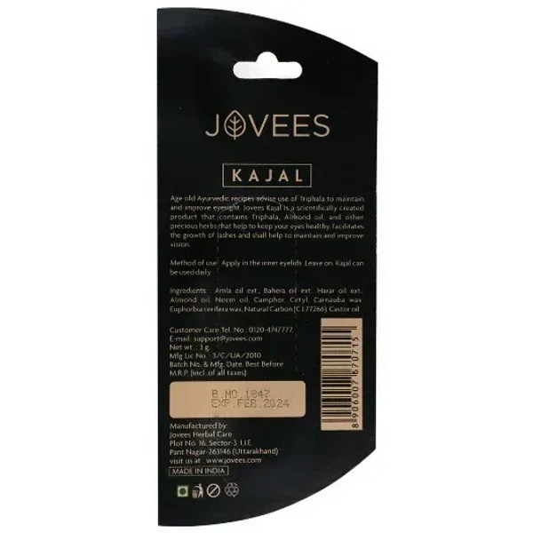 Enhance your eyes with the Jovees Herbal Kajal, a premium-quality herbal kohl designed to deliver a mesmerizing, intense black finish. Carefully crafted with natural ingredients, this kajal is perfect for everyday use, offering both beauty and care for your delicate eyes.