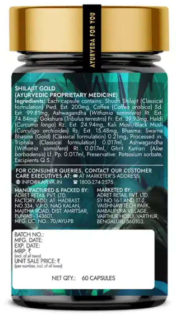 High-quality Kapiva Shilajeet Gold 60 Capsules | For Stamina, Muscle Growth & Energy | Ashwagandha, Gokshura, Safed Musali & Other Action Herbs & 100% Ayurvedic perfect for everyday use. Carefully selected to offer freshness and great taste in every bite.