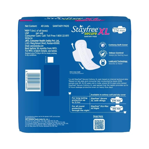 - Exceptional Absorbency: Stayfree Secure XL pads are crafted to provide long-lasting protection, so you can stay worry-free all day.