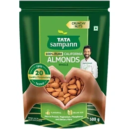 Indulge in the wholesome goodness of Tata Sampann California Almonds, 500 g, brought to you by Cyffro. These almonds are carefully sourced from the finest Californian farms to deliver exceptional quality, taste, and nutrition. Whether you're looking for a healthy snack, a boost of energy, or a versatile ingredient for your recipes, these premium almonds are the perfect choice!