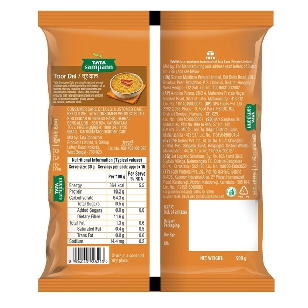Tata Sampann Toor Dal, 500g – The Perfect Choice for Every Kitchen