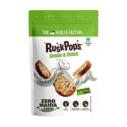 Don't miss out on this deliciously healthy treat. Grab your pack of The Health Factory Cream & Onion Zero Maida Rusk Pops today from Cyffro and redefine your snacking experience. Your taste buds—and your body—will thank you!