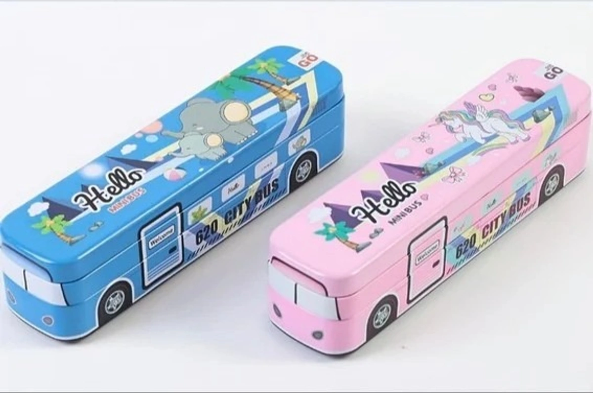 Travel Bus Metal Pencil Box Double Comparment B-620