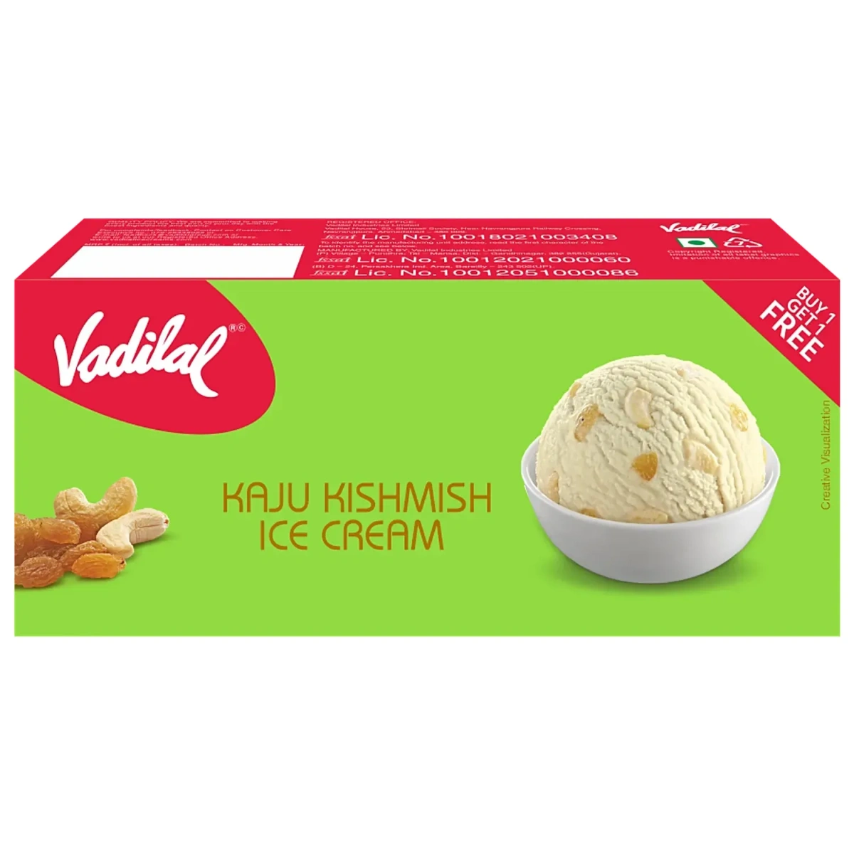 Vadilal Kaju Kishmish Ice Cream, 700 ml (Buy 1 Get 1 Free)