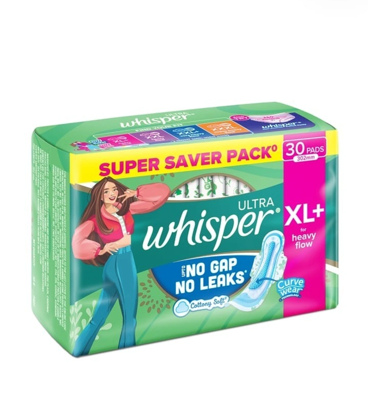 - No Gaps, No Leaks: Whisper Ultra pads are designed with advanced protection to prevent leaks, keeping you dry and confident all day long.