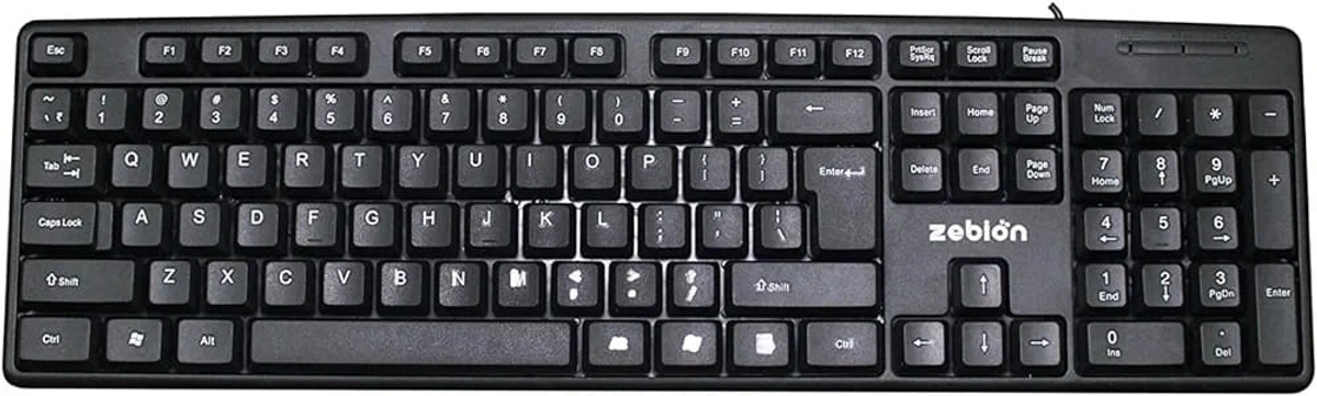 Zebion K500 USB Keyboard, Rugged Heavy-Duty Body, Tested with Over 5 Million Keystrokes,Clicky-Touch Feel, Ergonomic Design Comes with 102 Keys Including Rupee Key (Black)
